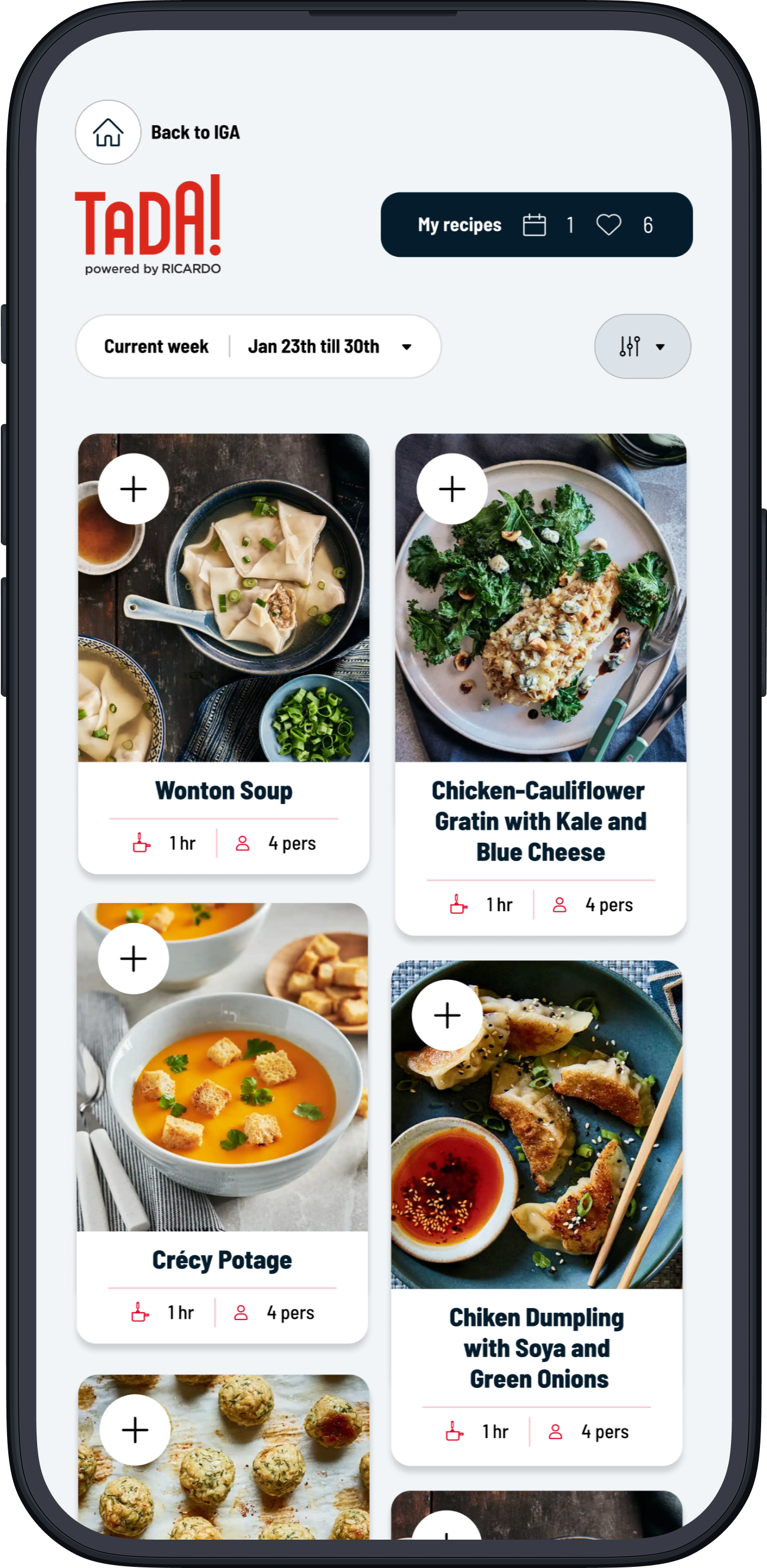 Browse the selection of RICARDO recipes and add ones you want to try to this week’s menu.