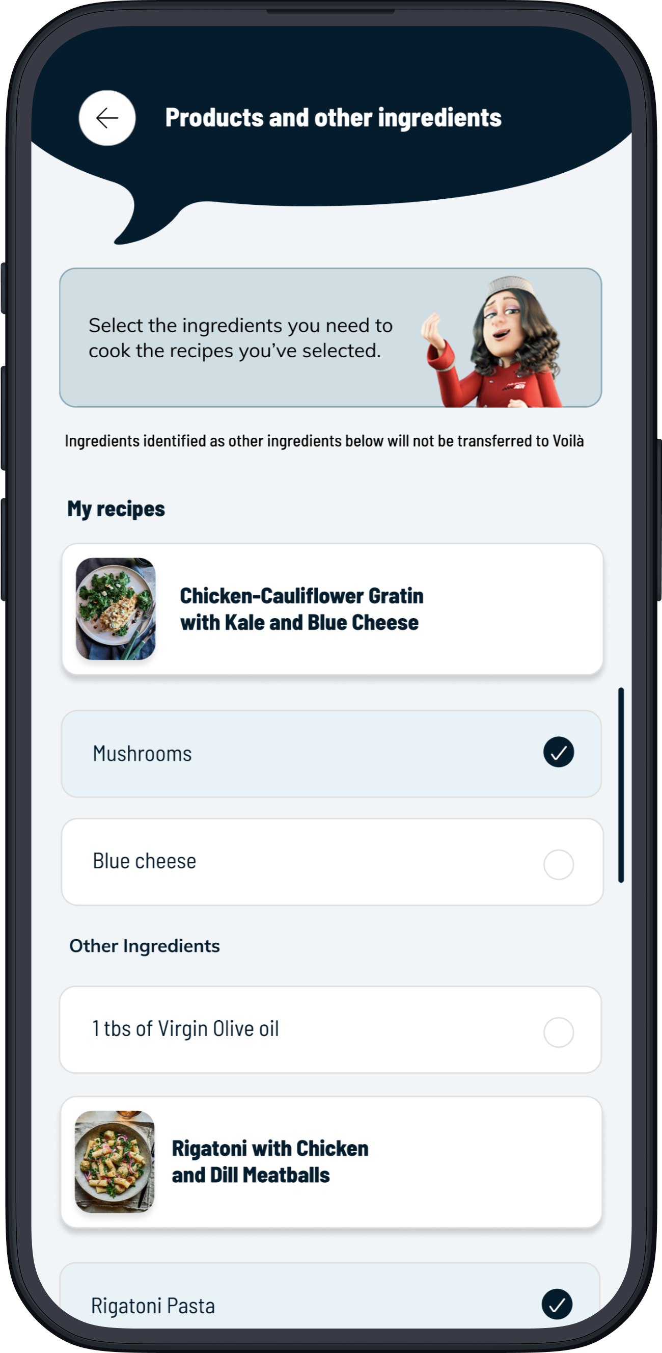 Select the ingredients you need for this week’s menu.